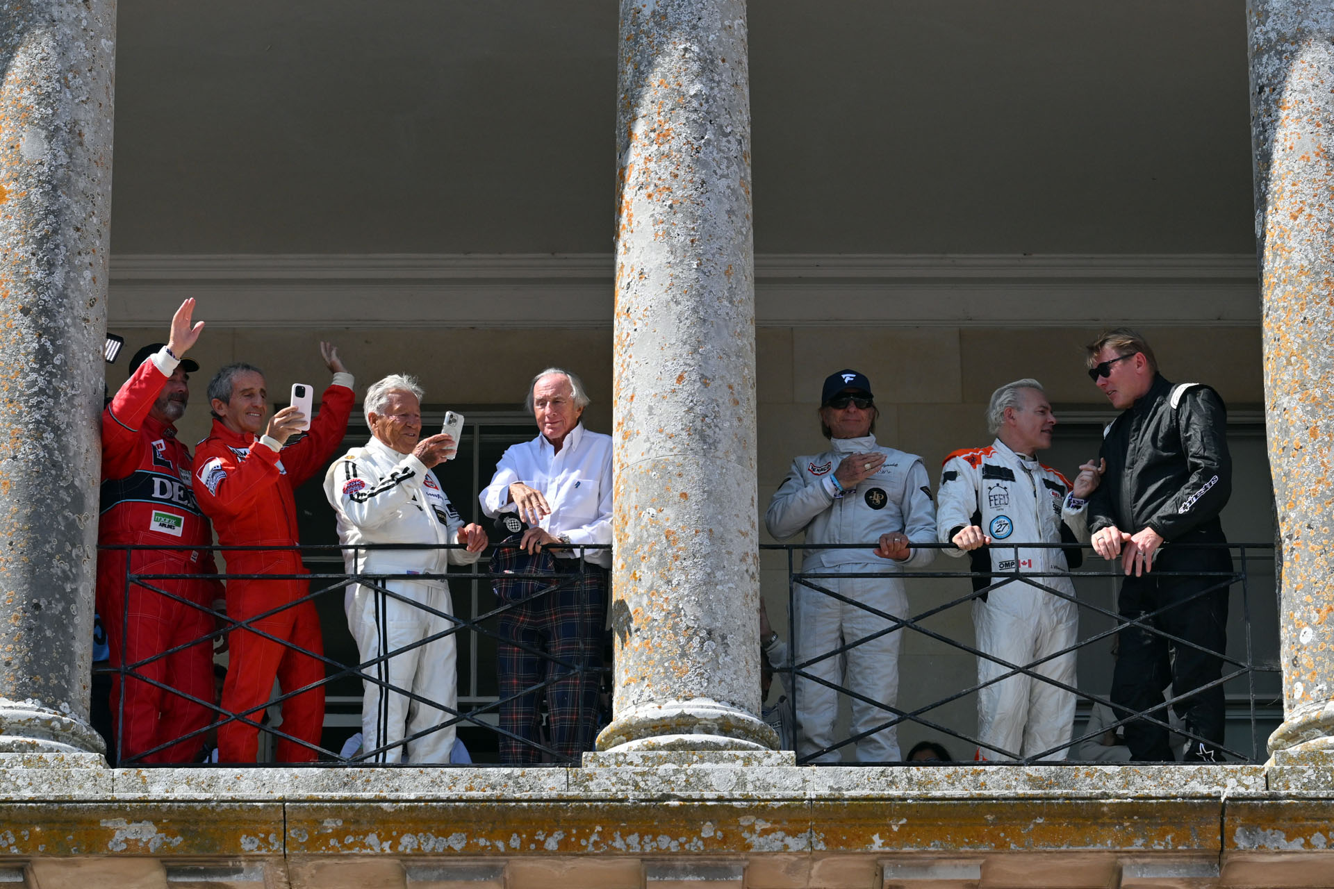 Fans were treated to an historic moment on Saturday afternoon, when the Balcony of Goodwood House welcomed Alain Prost, Emerson Fittipaldi, Sir Jackie Stewart, Jacques Villeneuve, Mario Andretti, Mika Häkkinen and Nigel Mansell alongside Bernie Ecclestone, Karun Chandhok and The Duke of Richmond.